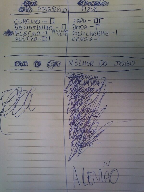 “Hoje pro Cebola, o jogo foi péssimo, fez: 0 gols e no final amarelo” (SANTOS, Felipe)ADENDO: Sumula da rodada anterior: