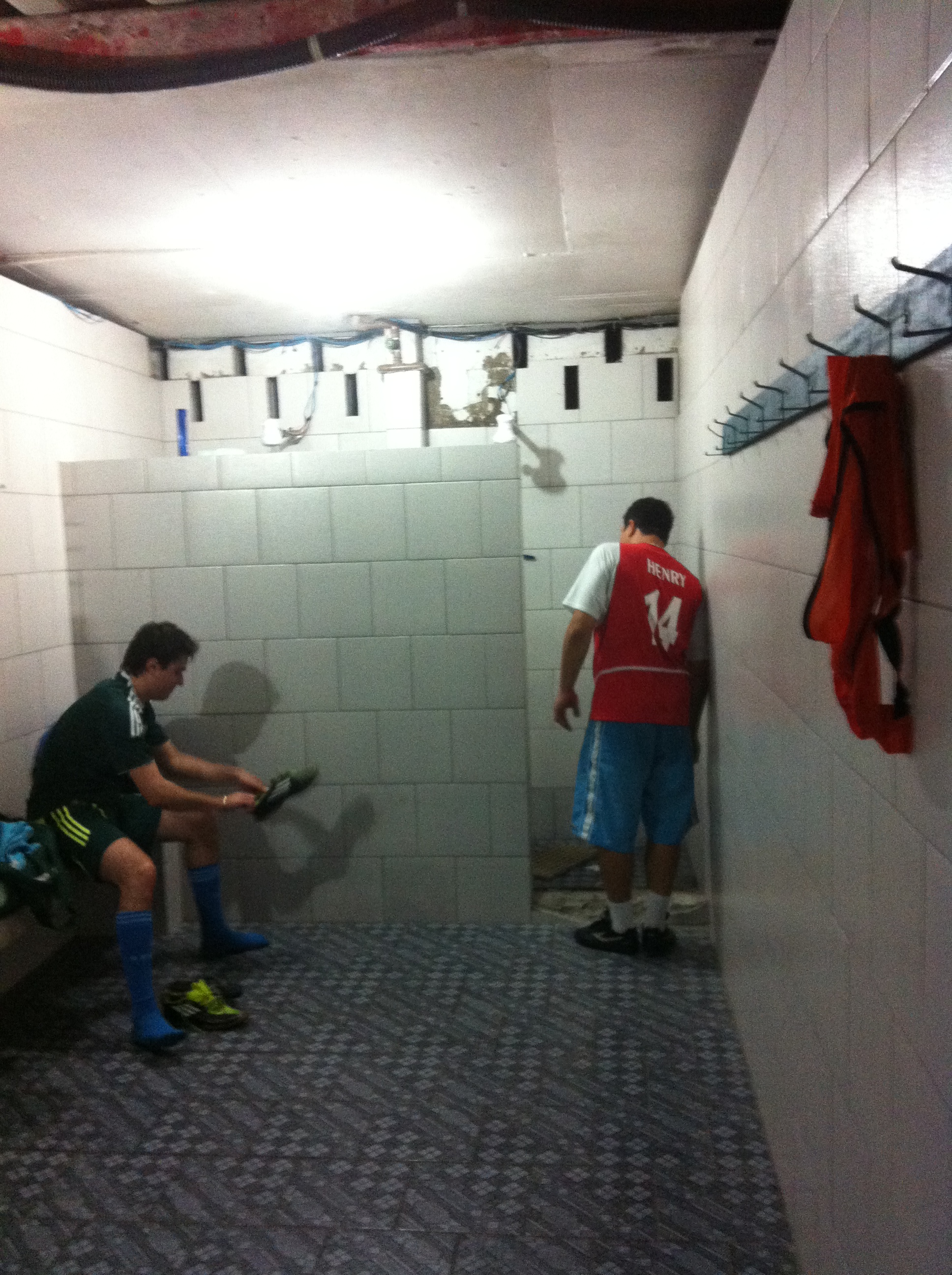 Ao final da partida, a tradicional cerveja e o tradicional banho do geninho P de monstro.