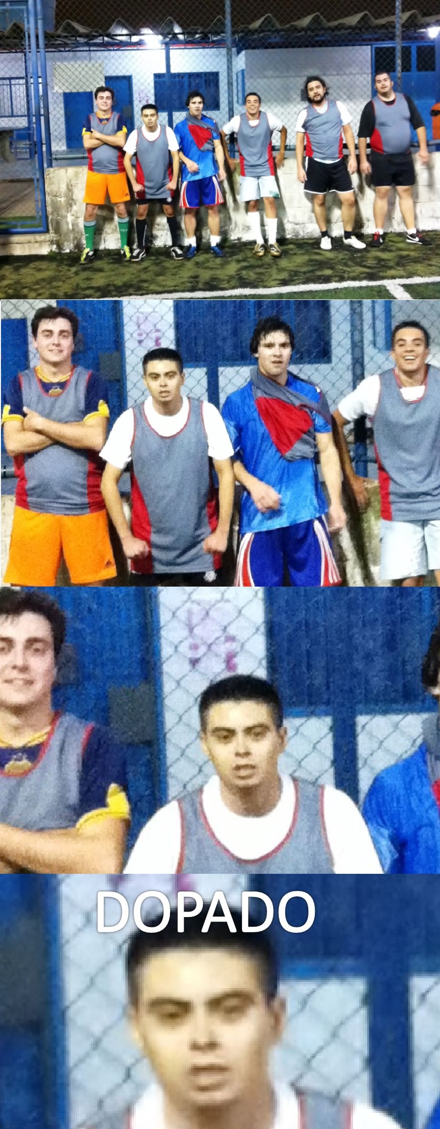 2. Isto posto, começamos a notar o comportamento estranho, às vezes agressivo de Felipe pinga na quadra. A fim de evidenciar o doping, iniciamos as gravações de vídeo e imagens do jogador, o que claramente os senhores podem notar que não se trata de um estado normal; não por menos o mesmo se sagrou o artilheiro da noite com 5 gols, o que será discutido posteriormente se serão computados ou desconsiderados.