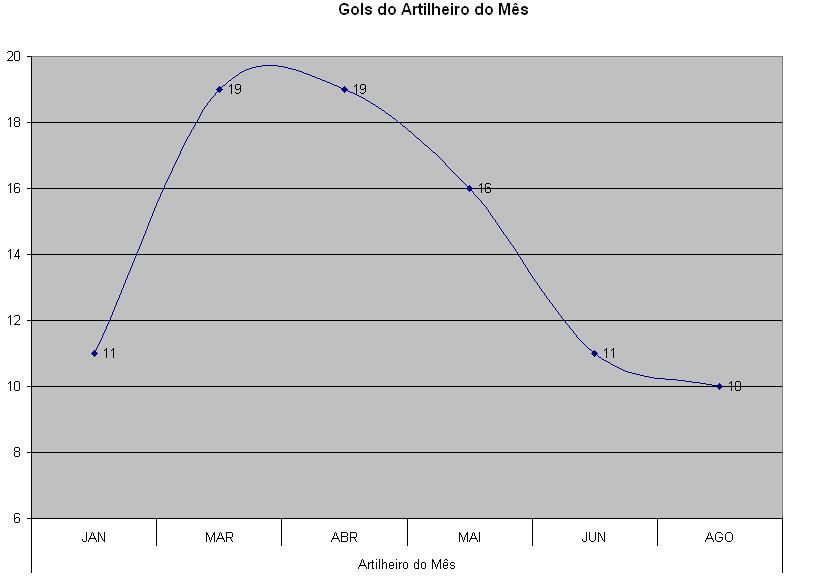 Com a analise do nosso renomado “Centro de Estudos e Pesquisas Estatiticas Futebolisticas”, verificamos que a média de gols vem diminuindo gradativamente. Notamos isso ao listar os gols dos artilheiros mensais: